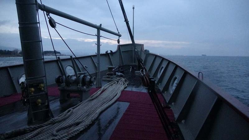 Çanakkale Şehir İskelesi’ne bağlı olan gemi, saat 07.15’te mayın dökülen alana doğru yol aldı. 109 yıl önce mayınların dökülmeye başladığı Erenköy mevkisinde tören yapıldı.